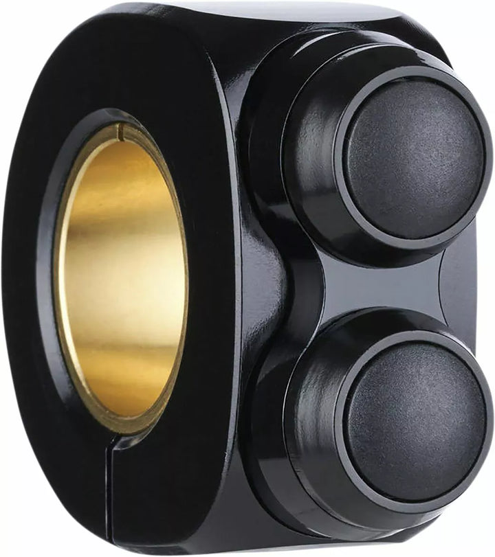 Das Mo.Switch Basic ist eine universelle, qualitativ hochwertige Drücken-Button-Steuerung für Lenker mit 1 Zoll oder 22 mm (7/8-Zoll-Rohrdurchmesser) in einem einfachen, eleganten Design. In Kombination mit einer elektronischen Drücken-Button-Kontrollkasten (nicht enthalten) können diese CNC-hergestellten Druckbuttons alle elektrischen Einheiten wie Lichter, Indikatoren, elektrische Vorspeisen, Horn und vieles mehr wechseln. Optional ist der Buttonhalter (Inlay) auch mit einer silbernen Farbe erhältlich. Das kompakte Gehäuse ist mit Eiter zwei oder drei Druckknöpfen ausgestattet. Alle Tasten sind immer in Richtung des Treibers. Die zwei oder drei Tasten pro Einheit sind immer schwarz. Eine versteckte M4 -Edelstahl -Montageschraube klemmt das Gehäuse sicher zu jedem Lenker. Die einzelnen Tasten sind von hoher Qualität, sehr robust und gegen Vibration und Spritzwasser (IP65). Sie ermöglichen einen sicheren Betrieb, selbst wenn Sie mit einem Handschuh arbeiten. Eine Kabel für ein oder zwei Draht, die zwei Klemmen pro Druckknopf problemlos möglich ist. Ein Terminal für den Boden ist bereits intern für die Eindrahtverkabelung bereitgestellt. Die Kabelrouting in den Griffstangen ist daher einfach. Bei möglichen Schäden sind die einzelnen Drückbuttons individuell erhältlich und können ersetzt werden. Der MO.Switch Basic ist natürlich mit allen gemeinsamen Push-Pus kompatibel