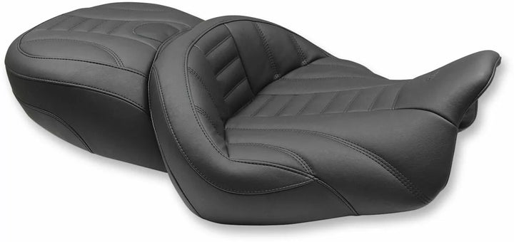 Sauberes Erscheinungsbild mit einer erweiterten Vinylabdeckung und einer detaillierten Automobilnähte, der faserfaserischen Pan und ganztägigen Schaumstoffstiche unterstützt Sie in einer idealen Kreuzfahrthaltung, die sieben Fahrer 2 "weiterhin als unser Standard-Tour-Sitze optionaler Fahrer-Back-Rast (separat verkauft) nicht funktionieren.