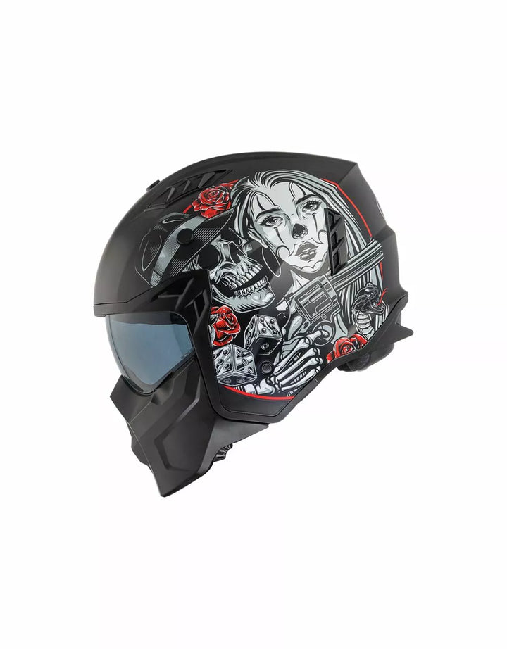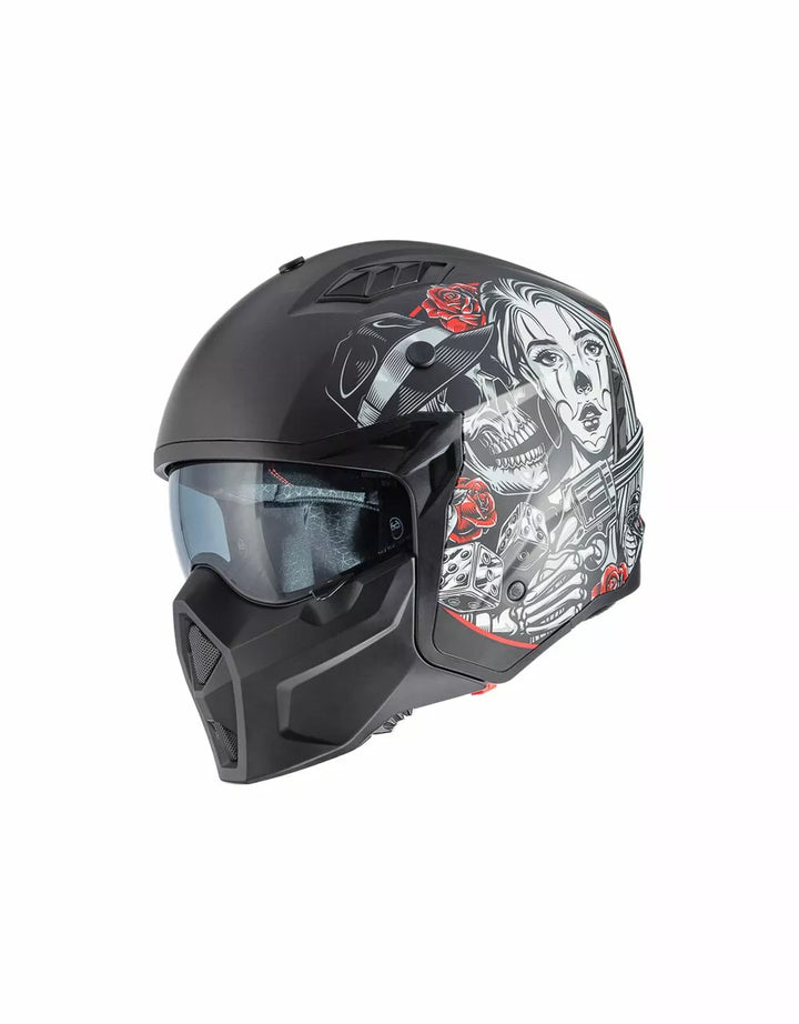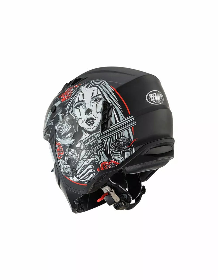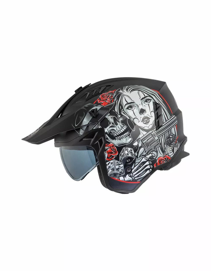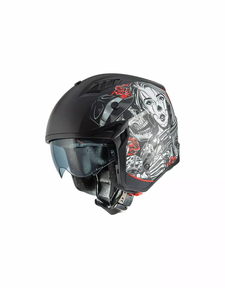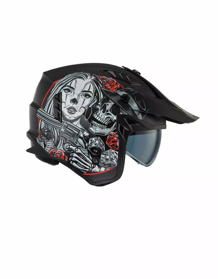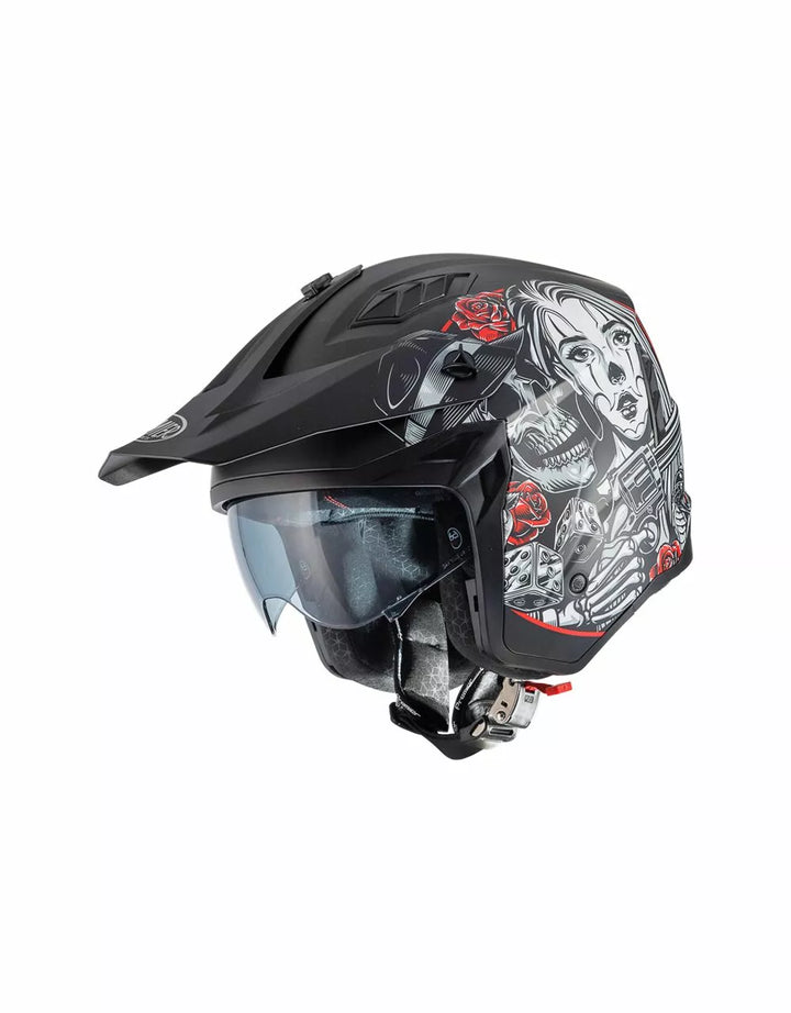 Die thermoplastische Außenkonstruktion ist leicht und die innere Konstruktion besteht aus EPS-Materialien mit unterschiedlicher Dichte, abhängig vom Bereich, um die Reaktion auf die Auswirkung zu gewährleisten. Der abnehmbare Kinnabschnitt, um diesen Helm mit Vollgesichts in einen Strahlhelm zu verwandeln. , Visor ist einspritzgeformtes transparentes Polycarbonat und hat eine Anti-Kratzer-Behandlung. Innenvisorarbeiten wie Sonnenbrillen und können in der Hülle angehoben werden. Das Lüftungssystem hat zwei Luftaufnahmen im oberen Teil der Schale und zwei Extraktoren auf der Rückseite. Die Positionierung des Innenraums wurde so konzipiert, dass sie den Blick breit und Bewegungsgefühl lassen. , Innenräume sind abnehmbar, waschbar und durch die Desinfektionsbehandlung hypoallergen.