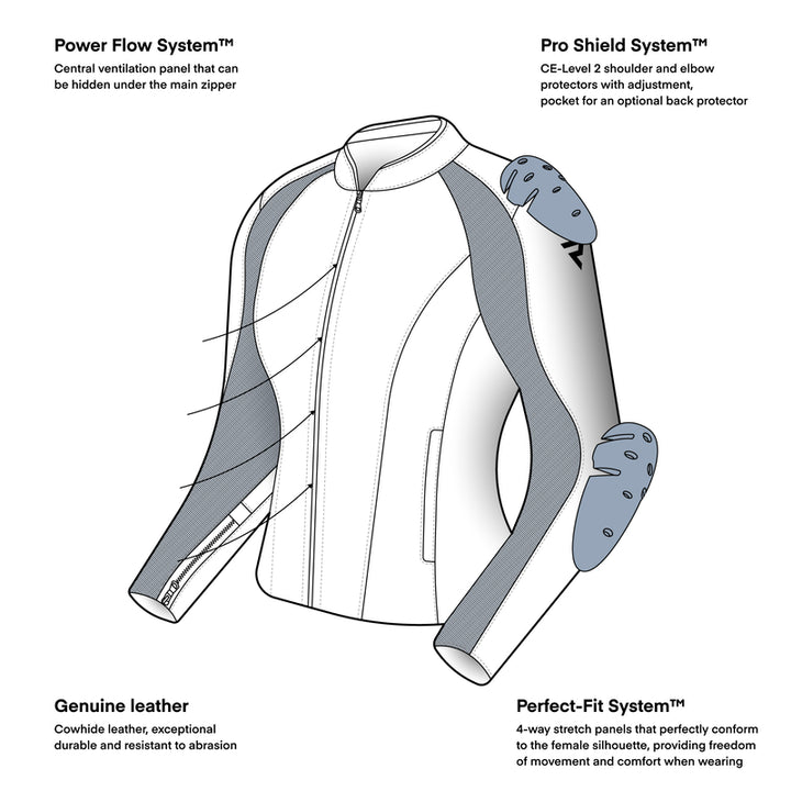 Das minimalistische Design macht Siena Zu Eine stilvolle Wahl für alle Arten von Motorräderngleichzeitig wie es Hohes Sicherheitsniveau mit CE -Stufe 2 Schutz bei Schultern und Ellbogen Garantiert Sicherheit auf den Straßen.