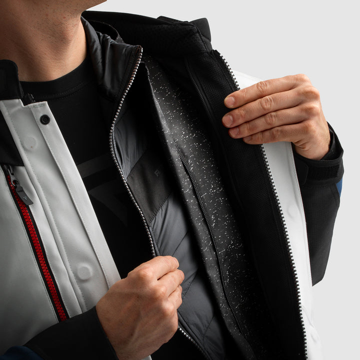– Eine wärmende Innenschicht, die auch separat während Pausen am Straßenrand getragen werden kann.