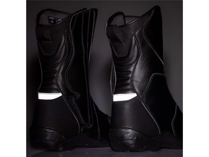 Der Touringstiefel ist aus Mikrofaser gefertigt und verfügt über eine SinAqua-Schicht, die ihn wasserdicht, aber dennoch atmungsaktiv macht. Er hat Schutz für Schienbein, Knöchel und Ferse sowie eine verstärkte Zehenkappe. Der Stiefel ist CE-zertifiziert.