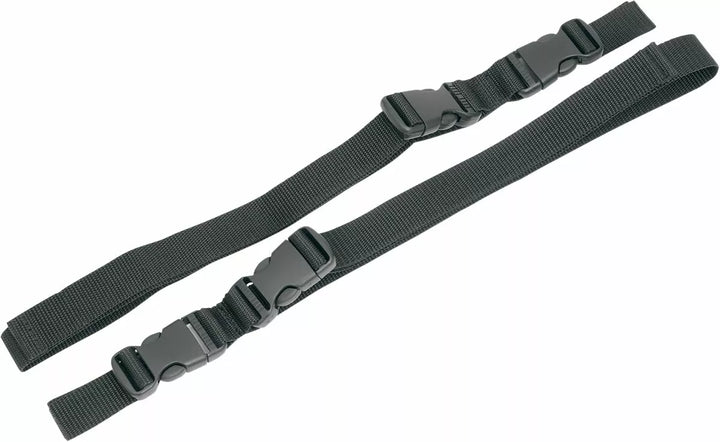Es sind zwei längenverstellbare Nylongurte enthalten; Jede Maßnahmen 38 "l Wenn Schnallen nicht miteinander verbunden sind, enthält jeder Riemen eine männliche und eine weibliche Schnalle sowie eine zweite männliche Schnalle, die an den Riemen genäht ist, das in die meisten Saddlemen -Gepäcks einbiegt, zwei separate weibliche Schnallen schnallen included