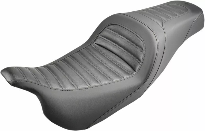 Das raffinierte Design mit Split-Kissen-Design trennt die Sitzfläche von der Lendenwirbelsäule von der Lendenwirbelsäule, um das Steißbein und den Rückendruck für maximale Langstreckenkomfort, hoher Lendenbetreuung und breite Sattel-Sattel-Sattel-Sattel und Beine für überlegene Komfort zu reduzieren. Die optimierte Nase verbessert die Reichweite, die die Gelcore -Technologie sowohl in Fahrer als auch in den Beifahrergebieten reduziert den Druck des Stillbrauchs und erhöht die Zirkulation und den Komfort, Saddlehyd -Abdeckung im alten School Roll & Fleat Style, entworfen und hergestellt in den USA