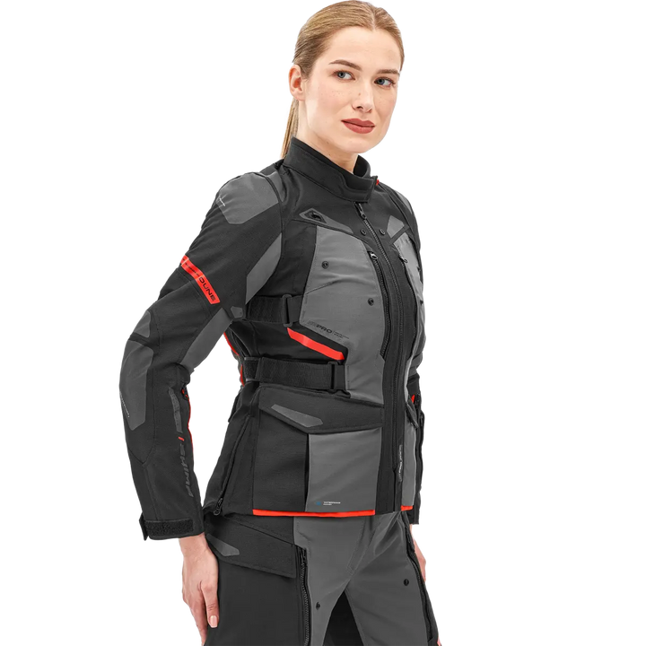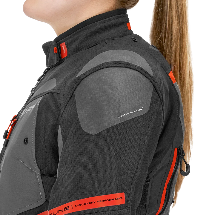 Mit einer Zertifizierung auf AA Level Und fortgeschritten Stufe 2 Schutz im Rücken, Schultern und Ellbogen, Dune Lady gibt Ihnen die Sicherheit, sich ganz auf die Straße vor Ihnen zu konzentrieren. Der Ellbogenschutz kann in drei Höhenpositionen eingestellt werden - für eine genaue Anpassung. Fügen Sie diese Verstärkungen in hinzu Duolayer Protection ™ Und langlebig RipStop TextileDann haben Sie eine Jacke, die in härterem Hold steht.