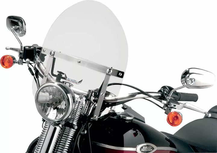 Mittelgroße Windschutzscheibe; 1 "Hardware enthalten, universelle Lenkerklammermontage, passt die meisten Harley Davidson-Modelle mit 1" Buckhorn- oder Pullback-Lenker und einem 5-3/4 "-Stemeld, das in den USA hergestellt wurde.