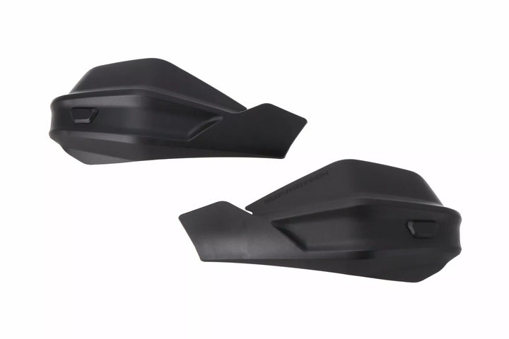 Geschlossene Form mit Seitenabdeckung, wirkungsresistenter Kunststoff schützt vor Wind, Wetter und Zweigen, ein auffälliges Design, zusätzlichen Schutz mit dem separat verfügbaren Crashpads-Set, mehr Wetterschutz dank des separaten erweiterten Handschutzschalensatzes, Montageanweisungen, Montagematerial
