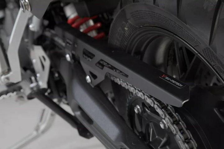 Der SW-Motech-Kettenschutz ist eine hochwertige Alternative zum ursprünglichen Plastikkettenschutz. Der gummibraune Befestigung ist leicht zu installieren, solide Aluminiumkonstruktion als Alternative zum Plastikkettenschutz, perfekter Anpassung, der die Kurvenanlagen des Fahrrads umarmt, dämpft die Fahrvibrationen, die in der Entbindung enthalten ist, 1 x Kettenschutz, Anweisungen der Montaging-Materialien, die Anweisungen des Fahrrads, Montaging-Material-Materialien enthalten.