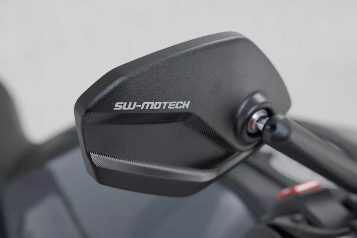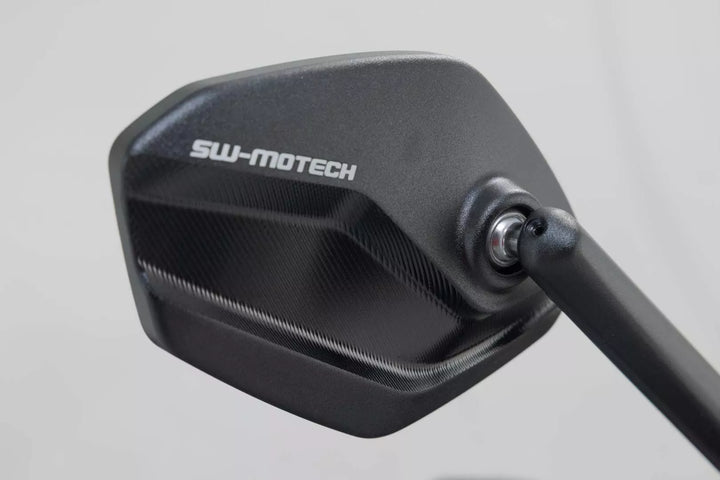 SW-Motech stellt die einstellbaren Spiegel in einem modernen und flachen Design aus hochwertigen geschmiedeten und schwarzen anodierten Aluminium her. Die Spiegelarme bestehen aus kontinuierlich einstellbaren Elementen und können jeweils um 30 Millimeter verlängert werden. Auf diese Weise können die Höhe und Länge der Spiegel an die Anforderungen des jeweiligen Piloten angepasst werden. Dieses Sportspiegel -Set hat einen kurzen Spiegelarm. Spiegelarmlänge: 152 mm., Modernes und flaches Kantendesign, Teilbereiche und funktionelle Oberflächen gemahlen., 4 verschiedene Einstellungsunternehmen für die bestmögliche Ausrichtung. Montage auf der vorhandenen Spiegelverbindung.