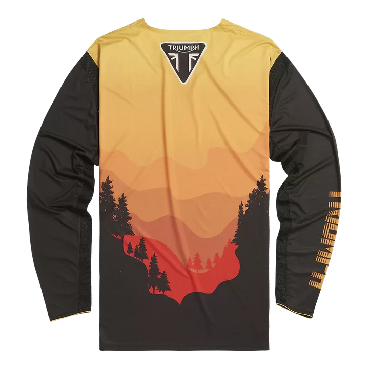Triumph Sunset ist mehr als nur ein Kreuzpullover - es ist eine Hommage an die Freiheit, die Landstraße und das Abenteuer, das niemals endet. Mit einem Augenabschnitt in rot, orange und schwarz und dem Ikonen Triumph -Motorräder-Das Logo über der Brust macht es sowohl auf als auch neben der Strecke zu einer Aussage.
