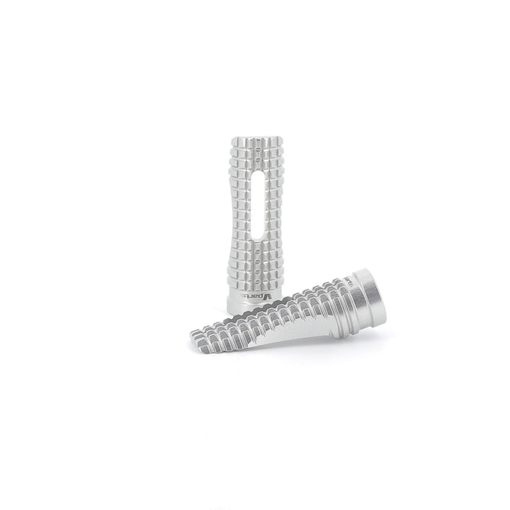 Aluminium-Fußrasten aus anodisiertem, CNC-bearbeitetem Aluminium. Verkauft in Paaren. Ohne Verlinkung. Alle Modelle sind erhältlich in: Rot, Grün, Schwarz, Aluminium, Gold, Titan, Orange, Blau. Farbe: Aluminium