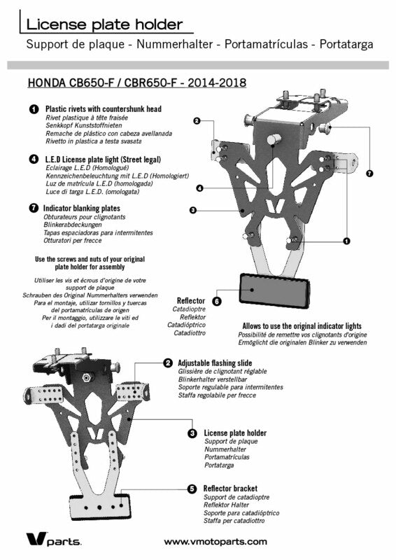 V PARTS Kennzeichenhalter Schwarz Honda CB650F C8-SPH024