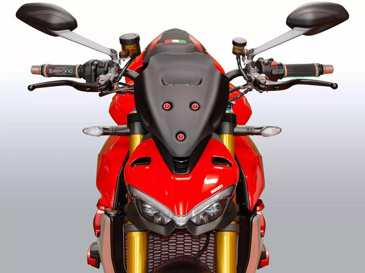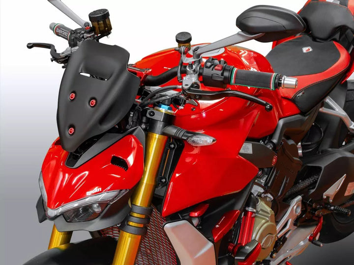 Windschutzscheibe mit hochwertigem PMMA -Plexiglass. Die nervigen Turbulenzen auf den Schultern und dem Helm werden beseitigt. Der größere Schutz des Bildschirms passt perfekt zur Linie des Fahrrads und verleiht ihm eine noch mehr App.